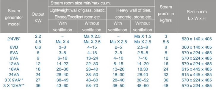 (eg: a 8m³ room should use a 8kw steam generator)